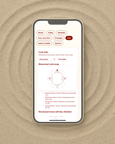 This is not a productivity or optimization tool. It is a calm digital space to build a daily relationship with your cycle and your sensitivity, at your own pace.